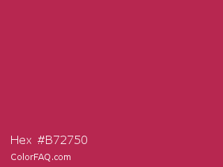 Hex #b72750 Color is a normal rose color and the nearest color is Amaranth Purple #ab274f. Hex code #b72750 and RGB value is rgb(183,39,80). In RGB color space, this color is composed of 72% red, 15% green, 31% blue, In CMYK color space, this color is composed of 0% cyan, 79% magenta, 56% yellow , 28% black , In HSL color space, this color has a hue angle of 343° , 65% saturation and 44% lightness.