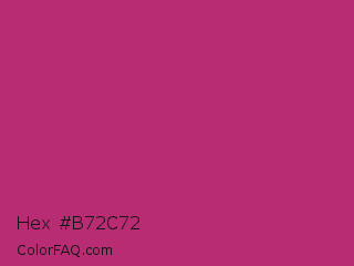 Hex #b72c72 Color is a normal rose color and the nearest color is Hibiscus #b6316c. Hex code #b72c72 and RGB value is rgb(183,44,114). In RGB color space, this color is composed of 72% red, 17% green, 45% blue, In CMYK color space, this color is composed of 0% cyan, 76% magenta, 38% yellow , 28% black , In HSL color space, this color has a hue angle of 330° , 61% saturation and 45% lightness.