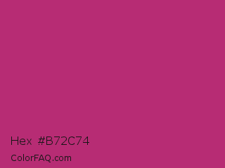 Hex #b72c74 Color is a normal rose color and the nearest color is Hibiscus #b6316c. Hex code #b72c74 and RGB value is rgb(183,44,116). In RGB color space, this color is composed of 72% red, 17% green, 45% blue, In CMYK color space, this color is composed of 0% cyan, 76% magenta, 37% yellow , 28% black , In HSL color space, this color has a hue angle of 329° , 61% saturation and 45% lightness.