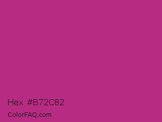 Hex #b72c82 Color is a normal magenta color and the nearest color is Medium Red Violet #bb3385. Hex code #b72c82 and RGB value is rgb(183,44,130). In RGB color space, this color is composed of 72% red, 17% green, 51% blue, In CMYK color space, this color is composed of 0% cyan, 76% magenta, 29% yellow , 28% black , In HSL color space, this color has a hue angle of 323° , 61% saturation and 45% lightness.