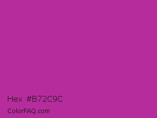 Hex #b72c9c Color is a normal magenta color and the nearest color is Byzantine #bd33a4. Hex code #b72c9c and RGB value is rgb(183,44,156). In RGB color space, this color is composed of 72% red, 17% green, 61% blue, In CMYK color space, this color is composed of 0% cyan, 76% magenta, 15% yellow , 28% black , In HSL color space, this color has a hue angle of 312° , 61% saturation and 45% lightness.