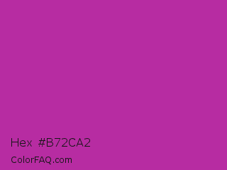 Hex #b72ca2 Color is a normal magenta color and the nearest color is Byzantine #bd33a4. Hex code #b72ca2 and RGB value is rgb(183,44,162). In RGB color space, this color is composed of 72% red, 17% green, 64% blue, In CMYK color space, this color is composed of 0% cyan, 76% magenta, 11% yellow , 28% black , In HSL color space, this color has a hue angle of 309° , 61% saturation and 45% lightness.