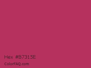 Hex #b7315e Color is a normal rose color and the nearest color is Rich Maroon #b03060. Hex code #b7315e and RGB value is rgb(183,49,94). In RGB color space, this color is composed of 72% red, 19% green, 37% blue, In CMYK color space, this color is composed of 0% cyan, 73% magenta, 49% yellow , 28% black , In HSL color space, this color has a hue angle of 340° , 58% saturation and 45% lightness.