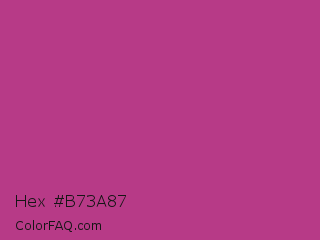 Hex #b73a87 Color is a normal magenta color and the nearest color is Fandango #b53389. Hex code #b73a87 and RGB value is rgb(183,58,135). In RGB color space, this color is composed of 72% red, 23% green, 53% blue, In CMYK color space, this color is composed of 0% cyan, 68% magenta, 26% yellow , 28% black , In HSL color space, this color has a hue angle of 323° , 52% saturation and 47% lightness.