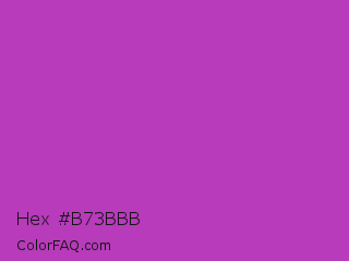 Hex #b73bbb Color is a normal magenta color and the nearest color is Byzantine #bd33a4. Hex code #b73bbb and RGB value is rgb(183,59,187). In RGB color space, this color is composed of 72% red, 23% green, 73% blue, In CMYK color space, this color is composed of 2% cyan, 68% magenta, 0% yellow , 27% black , In HSL color space, this color has a hue angle of 298° , 52% saturation and 48% lightness.