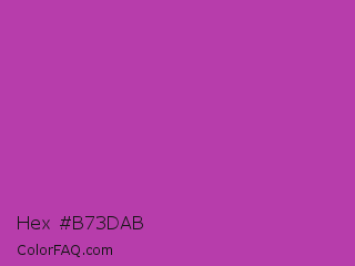 Hex #b73dab Color is a normal magenta color and the nearest color is Byzantine #bd33a4. Hex code #b73dab and RGB value is rgb(183,61,171). In RGB color space, this color is composed of 72% red, 24% green, 67% blue, In CMYK color space, this color is composed of 0% cyan, 67% magenta, 7% yellow , 28% black , In HSL color space, this color has a hue angle of 306° , 50% saturation and 48% lightness.