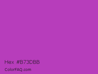 Hex #b73dbb Color is a normal magenta color and the nearest color is Fuchsia Pink #c154c1. Hex code #b73dbb and RGB value is rgb(183,61,187). In RGB color space, this color is composed of 72% red, 24% green, 73% blue, In CMYK color space, this color is composed of 2% cyan, 67% magenta, 0% yellow , 27% black , In HSL color space, this color has a hue angle of 298° , 51% saturation and 49% lightness.