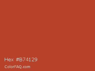 Hex #b74129 Color is a normal red color and the nearest color is Dark Pastel Red #c23b22. Hex code #b74129 and RGB value is rgb(183,65,41). In RGB color space, this color is composed of 72% red, 25% green, 16% blue, In CMYK color space, this color is composed of 0% cyan, 64% magenta, 78% yellow , 28% black , In HSL color space, this color has a hue angle of 10° , 63% saturation and 44% lightness.