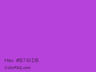 Hex #b741db Color is a normal purple color and the nearest color is Medium Orchid #ba55d3. Hex code #b741db and RGB value is rgb(183,65,219). In RGB color space, this color is composed of 72% red, 25% green, 86% blue, In CMYK color space, this color is composed of 16% cyan, 70% magenta, 0% yellow , 14% black , In HSL color space, this color has a hue angle of 286° , 68% saturation and 56% lightness.