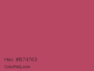 Hex #b74763 Color is a normal red color and the nearest color is Deep Blush #b44668. Hex code #b74763 and RGB value is rgb(183,71,99). In RGB color space, this color is composed of 72% red, 28% green, 39% blue, In CMYK color space, this color is composed of 0% cyan, 61% magenta, 46% yellow , 28% black , In HSL color space, this color has a hue angle of 345° , 44% saturation and 50% lightness.