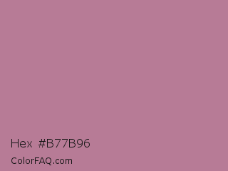 Hex #b77b96 Color is a normal rose color and the nearest color is English Lavender #b48395. Hex code #b77b96 and RGB value is rgb(183,123,150). In RGB color space, this color is composed of 72% red, 48% green, 59% blue, In CMYK color space, this color is composed of 0% cyan, 33% magenta, 18% yellow , 28% black , In HSL color space, this color has a hue angle of 333° , 29% saturation and 60% lightness.