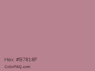 Hex #b7818f Color is a light rose color and the nearest color is English Lavender #b48395. Hex code #b7818f and RGB value is rgb(183,129,143). In RGB color space, this color is composed of 72% red, 51% green, 56% blue, In CMYK color space, this color is composed of 0% cyan, 30% magenta, 22% yellow , 28% black , In HSL color space, this color has a hue angle of 344° , 27% saturation and 61% lightness.