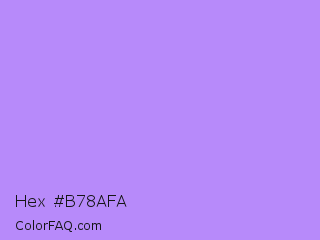 Hex #b78afa Color is a light violet color and the nearest color is Bright Lavender #bf94e4. Hex code #b78afa and RGB value is rgb(183,138,250). In RGB color space, this color is composed of 72% red, 54% green, 98% blue, In CMYK color space, this color is composed of 27% cyan, 45% magenta, 0% yellow , 2% black , In HSL color space, this color has a hue angle of 264° , 92% saturation and 76% lightness.