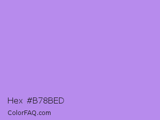 Hex #b78bed Color is a light violet color and the nearest color is Bright Lavender #bf94e4. Hex code #b78bed and RGB value is rgb(183,139,237). In RGB color space, this color is composed of 72% red, 55% green, 93% blue, In CMYK color space, this color is composed of 23% cyan, 41% magenta, 0% yellow , 7% black , In HSL color space, this color has a hue angle of 267° , 73% saturation and 74% lightness.