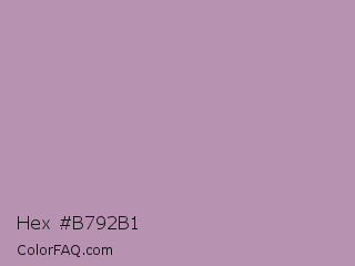 Hex #b792b1 Color is a light magenta color and the nearest color is Glossy Grape #ab92b3. Hex code #b792b1 and RGB value is rgb(183,146,177). In RGB color space, this color is composed of 72% red, 57% green, 69% blue, In CMYK color space, this color is composed of 0% cyan, 20% magenta, 3% yellow , 28% black , In HSL color space, this color has a hue angle of 310° , 20% saturation and 65% lightness.