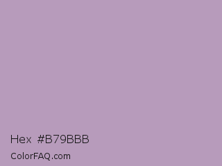 Hex #b79bbb Color is a light magenta color and the nearest color is Pastel Purple #b39eb5. Hex code #b79bbb and RGB value is rgb(183,155,187). In RGB color space, this color is composed of 72% red, 61% green, 73% blue, In CMYK color space, this color is composed of 2% cyan, 17% magenta, 0% yellow , 27% black , In HSL color space, this color has a hue angle of 293° , 19% saturation and 67% lightness.