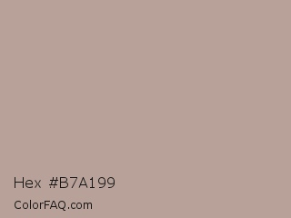 Hex #b7a199 Color is a light orange color and the nearest color is Thatch #b69d98. Hex code #b7a199 and RGB value is rgb(183,161,153). In RGB color space, this color is composed of 72% red, 63% green, 60% blue, In CMYK color space, this color is composed of 0% cyan, 12% magenta, 16% yellow , 28% black , In HSL color space, this color has a hue angle of 16° , 17% saturation and 66% lightness.