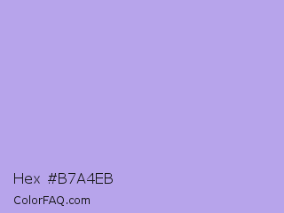 Hex #b7a4eb Color is a light indigo color and the nearest color is Biloba Flower #b2a1ea. Hex code #b7a4eb and RGB value is rgb(183,164,235). In RGB color space, this color is composed of 72% red, 64% green, 92% blue, In CMYK color space, this color is composed of 22% cyan, 30% magenta, 0% yellow , 8% black , In HSL color space, this color has a hue angle of 256° , 64% saturation and 78% lightness.