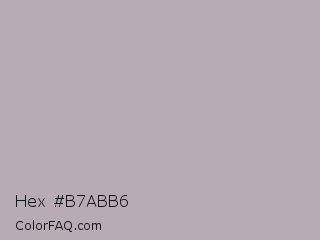 Hex #b7abb6 Color is a light magenta color and the nearest color is Nobel #b7b1b1. Hex code #b7abb6 and RGB value is rgb(183,171,182). In RGB color space, this color is composed of 72% red, 67% green, 71% blue, In CMYK color space, this color is composed of 0% cyan, 7% magenta, 1% yellow , 28% black , In HSL color space, this color has a hue angle of 305° , 8% saturation and 69% lightness.