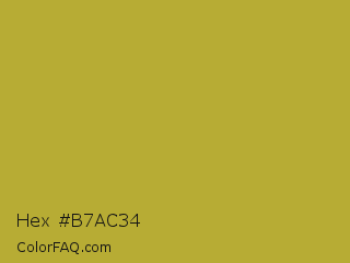 Hex #b7ac34 Color is a normal yellow color and the nearest color is Brass #b5a642. Hex code #b7ac34 and RGB value is rgb(183,172,52). In RGB color space, this color is composed of 72% red, 67% green, 20% blue, In CMYK color space, this color is composed of 0% cyan, 6% magenta, 72% yellow , 28% black , In HSL color space, this color has a hue angle of 55° , 56% saturation and 46% lightness.