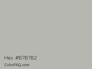 Hex #b7b7b2 Color is a light yellow color and the nearest color is Nobel #b7b1b1. Hex code #b7b7b2 and RGB value is rgb(183,183,178). In RGB color space, this color is composed of 72% red, 72% green, 70% blue, In CMYK color space, this color is composed of 0% cyan, 0% magenta, 3% yellow , 28% black , In HSL color space, this color has a hue angle of 60° , 3% saturation and 71% lightness.
