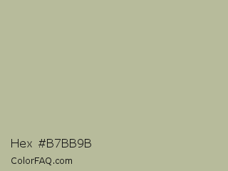 Hex #b7bb9b Color is a light yellow color and the nearest color is Eagle #b6baa4. Hex code #b7bb9b and RGB value is rgb(183,187,155). In RGB color space, this color is composed of 72% red, 73% green, 61% blue, In CMYK color space, this color is composed of 2% cyan, 0% magenta, 17% yellow , 27% black , In HSL color space, this color has a hue angle of 68° , 19% saturation and 67% lightness.