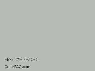 Hex #b7bdb6 Color is a light green color and the nearest color is Ash Gray #b2beb5. Hex code #b7bdb6 and RGB value is rgb(183,189,182). In RGB color space, this color is composed of 72% red, 74% green, 71% blue, In CMYK color space, this color is composed of 3% cyan, 0% magenta, 4% yellow , 26% black , In HSL color space, this color has a hue angle of 111° , 5% saturation and 73% lightness.