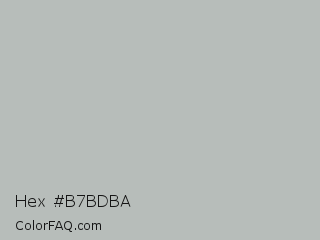 Hex #b7bdba Color is a light green color and the nearest color is Ash Gray #b2beb5. Hex code #b7bdba and RGB value is rgb(183,189,186). In RGB color space, this color is composed of 72% red, 74% green, 73% blue, In CMYK color space, this color is composed of 3% cyan, 0% magenta, 2% yellow , 26% black , In HSL color space, this color has a hue angle of 150° , 4% saturation and 73% lightness.