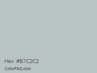 Hex #b7c2c2 Color is a light cyan color and the nearest color is Silver Sand #bfc1c2. Hex code #b7c2c2 and RGB value is rgb(183,194,194). In RGB color space, this color is composed of 72% red, 76% green, 76% blue, In CMYK color space, this color is composed of 6% cyan, 0% magenta, 0% yellow , 24% black , In HSL color space, this color has a hue angle of 180° , 8% saturation and 74% lightness.