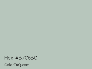 Hex #b7c6bc Color is a light green color and the nearest color is Powder Ash #bcc9c2. Hex code #b7c6bc and RGB value is rgb(183,198,188). In RGB color space, this color is composed of 72% red, 78% green, 74% blue, In CMYK color space, this color is composed of 8% cyan, 0% magenta, 5% yellow , 22% black , In HSL color space, this color has a hue angle of 140° , 12% saturation and 75% lightness.
