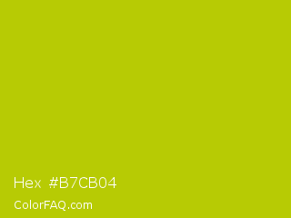 Hex #b7cb04 Color is a normal yellow color and the nearest color is Rio Grande #bbd009. Hex code #b7cb04 and RGB value is rgb(183,203,4). In RGB color space, this color is composed of 72% red, 80% green, 2% blue, In CMYK color space, this color is composed of 10% cyan, 0% magenta, 98% yellow , 20% black , In HSL color space, this color has a hue angle of 66° , 96% saturation and 41% lightness.