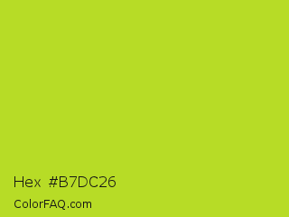 Hex #b7dc26 Color is a normal lime color and the nearest color is Key Lime Pie #bfc921. Hex code #b7dc26 and RGB value is rgb(183,220,38). In RGB color space, this color is composed of 72% red, 86% green, 15% blue, In CMYK color space, this color is composed of 17% cyan, 0% magenta, 83% yellow , 14% black , In HSL color space, this color has a hue angle of 72° , 72% saturation and 51% lightness.