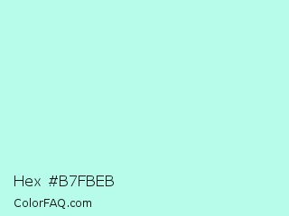 Hex #b7fbeb Color is a very light cyan color and the nearest color is Ice Cold #b1f4e7. Hex code #b7fbeb and RGB value is rgb(183,251,235). In RGB color space, this color is composed of 72% red, 98% green, 92% blue, In CMYK color space, this color is composed of 27% cyan, 0% magenta, 6% yellow , 2% black , In HSL color space, this color has a hue angle of 166° , 89% saturation and 85% lightness.