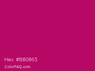 Hex #b80865 Color is a normal rose color and the nearest color is Lipstick #ab0563. Hex code #b80865 and RGB value is rgb(184,8,101). In RGB color space, this color is composed of 72% red, 3% green, 40% blue, In CMYK color space, this color is composed of 0% cyan, 96% magenta, 45% yellow , 28% black , In HSL color space, this color has a hue angle of 328° , 92% saturation and 38% lightness.