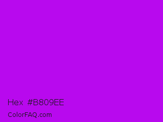 Hex #b809ee Color is a normal purple color and the nearest color is Vivid Mulberry #b80ce3. Hex code #b809ee and RGB value is rgb(184,9,238). In RGB color space, this color is composed of 72% red, 4% green, 93% blue, In CMYK color space, this color is composed of 23% cyan, 96% magenta, 0% yellow , 7% black , In HSL color space, this color has a hue angle of 286° , 93% saturation and 48% lightness.