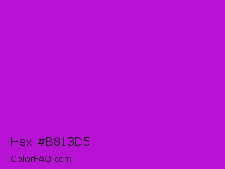Hex #b813d5 Color is a normal purple color and the nearest color is Vivid Mulberry #b80ce3. Hex code #b813d5 and RGB value is rgb(184,19,213). In RGB color space, this color is composed of 72% red, 7% green, 84% blue, In CMYK color space, this color is composed of 14% cyan, 91% magenta, 0% yellow , 16% black , In HSL color space, this color has a hue angle of 291° , 84% saturation and 45% lightness.
