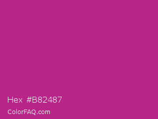 Hex #b82487 Color is a normal magenta color and the nearest color is Medium Red Violet #bb3385. Hex code #b82487 and RGB value is rgb(184,36,135). In RGB color space, this color is composed of 72% red, 14% green, 53% blue, In CMYK color space, this color is composed of 0% cyan, 80% magenta, 27% yellow , 28% black , In HSL color space, this color has a hue angle of 320° , 67% saturation and 43% lightness.