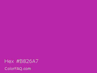 Hex #b826a7 Color is a normal magenta color and the nearest color is Byzantine #bd33a4. Hex code #b826a7 and RGB value is rgb(184,38,167). In RGB color space, this color is composed of 72% red, 15% green, 65% blue, In CMYK color space, this color is composed of 0% cyan, 79% magenta, 9% yellow , 28% black , In HSL color space, this color has a hue angle of 307° , 66% saturation and 44% lightness.