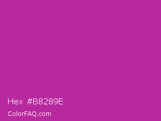 Hex #b8289e Color is a normal magenta color and the nearest color is Byzantine #bd33a4. Hex code #b8289e and RGB value is rgb(184,40,158). In RGB color space, this color is composed of 72% red, 16% green, 62% blue, In CMYK color space, this color is composed of 0% cyan, 78% magenta, 14% yellow , 28% black , In HSL color space, this color has a hue angle of 311° , 64% saturation and 44% lightness.