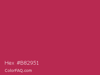 Hex #b82951 Color is a normal rose color and the nearest color is Amaranth Purple #ab274f. Hex code #b82951 and RGB value is rgb(184,41,81). In RGB color space, this color is composed of 72% red, 16% green, 32% blue, In CMYK color space, this color is composed of 0% cyan, 78% magenta, 56% yellow , 28% black , In HSL color space, this color has a hue angle of 343° , 64% saturation and 44% lightness.