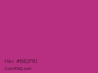 Hex #b82f81 Color is a normal magenta color and the nearest color is Medium Red Violet #bb3385. Hex code #b82f81 and RGB value is rgb(184,47,129). In RGB color space, this color is composed of 72% red, 18% green, 51% blue, In CMYK color space, this color is composed of 0% cyan, 74% magenta, 30% yellow , 28% black , In HSL color space, this color has a hue angle of 324° , 59% saturation and 45% lightness.