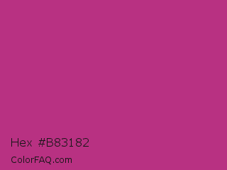 Hex #b83182 Color is a normal magenta color and the nearest color is Medium Red Violet #bb3385. Hex code #b83182 and RGB value is rgb(184,49,130). In RGB color space, this color is composed of 72% red, 19% green, 51% blue, In CMYK color space, this color is composed of 0% cyan, 73% magenta, 29% yellow , 28% black , In HSL color space, this color has a hue angle of 324° , 58% saturation and 46% lightness.