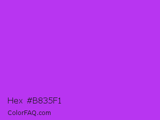 Hex #b835f1 Color is a normal purple color and the nearest color is Veronica #a020f0. Hex code #b835f1 and RGB value is rgb(184,53,241). In RGB color space, this color is composed of 72% red, 21% green, 95% blue, In CMYK color space, this color is composed of 24% cyan, 78% magenta, 0% yellow , 5% black , In HSL color space, this color has a hue angle of 282° , 87% saturation and 58% lightness.