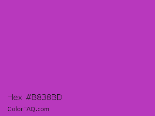 Hex #b838bd Color is a normal magenta color and the nearest color is Steel Pink #cc33cc. Hex code #b838bd and RGB value is rgb(184,56,189). In RGB color space, this color is composed of 72% red, 22% green, 74% blue, In CMYK color space, this color is composed of 3% cyan, 70% magenta, 0% yellow , 26% black , In HSL color space, this color has a hue angle of 298° , 54% saturation and 48% lightness.