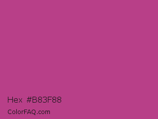 Hex #b83f88 Color is a normal magenta color and the nearest color is Fandango #b53389. Hex code #b83f88 and RGB value is rgb(184,63,136). In RGB color space, this color is composed of 72% red, 25% green, 53% blue, In CMYK color space, this color is composed of 0% cyan, 66% magenta, 26% yellow , 28% black , In HSL color space, this color has a hue angle of 324° , 49% saturation and 48% lightness.