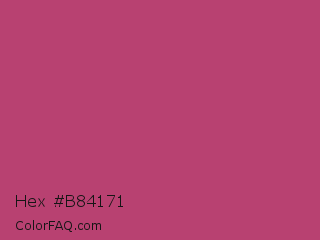 Hex #b84171 Color is a normal rose color and the nearest color is Raspberry Rose #b3446c. Hex code #b84171 and RGB value is rgb(184,65,113). In RGB color space, this color is composed of 72% red, 25% green, 44% blue, In CMYK color space, this color is composed of 0% cyan, 65% magenta, 39% yellow , 28% black , In HSL color space, this color has a hue angle of 336° , 48% saturation and 49% lightness.