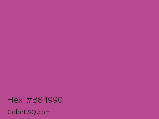 Hex #b84990 Color is a normal magenta color and the nearest color is Mulberry #c54b8c. Hex code #b84990 and RGB value is rgb(184,73,144). In RGB color space, this color is composed of 72% red, 29% green, 56% blue, In CMYK color space, this color is composed of 0% cyan, 60% magenta, 22% yellow , 28% black , In HSL color space, this color has a hue angle of 322° , 44% saturation and 50% lightness.