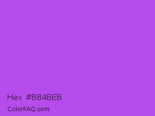 Hex #b84beb Color is a light purple color and the nearest color is Medium Orchid #ba55d3. Hex code #b84beb and RGB value is rgb(184,75,235). In RGB color space, this color is composed of 72% red, 29% green, 92% blue, In CMYK color space, this color is composed of 22% cyan, 68% magenta, 0% yellow , 8% black , In HSL color space, this color has a hue angle of 281° , 80% saturation and 61% lightness.