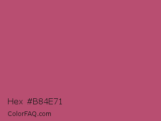 Hex #b84e71 Color is a normal rose color and the nearest color is Cadillac #b04c6a. Hex code #b84e71 and RGB value is rgb(184,78,113). In RGB color space, this color is composed of 72% red, 31% green, 44% blue, In CMYK color space, this color is composed of 0% cyan, 58% magenta, 39% yellow , 28% black , In HSL color space, this color has a hue angle of 340° , 43% saturation and 51% lightness.