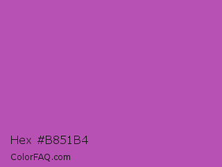 Hex #b851b4 Color is a normal magenta color and the nearest color is Fuchsia Pink #c154c1. Hex code #b851b4 and RGB value is rgb(184,81,180). In RGB color space, this color is composed of 72% red, 32% green, 71% blue, In CMYK color space, this color is composed of 0% cyan, 56% magenta, 2% yellow , 28% black , In HSL color space, this color has a hue angle of 302° , 42% saturation and 52% lightness.